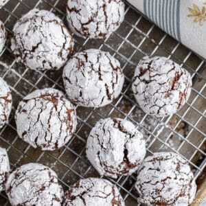 These decadent cookies are made with cocoa powder and rolled in powdered sugar, resulting in a beautiful crinkled appearance when baked, and a deliciously soft and chewy texture.