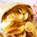 I used russet potatoes for these homemade chips. They are the potato most commonly used to make chips. However, almost any type of potato can be turned into a chip.